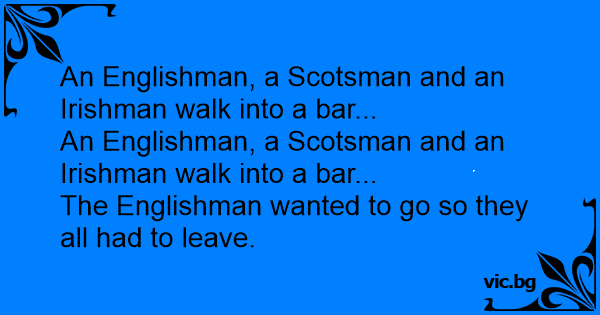 An Englishman, a Scotsman and an Irishman walk into a bar...