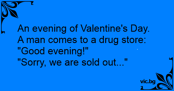 An evening of Valentine's Day. A man comes to a drug store: