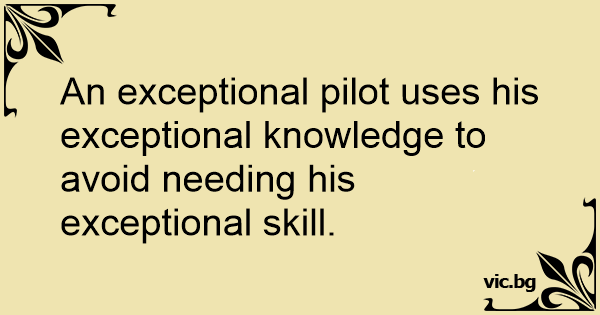 An exceptional pilot uses his exceptional knowledge to avoid needing his exceptional skill.