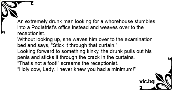 An extremely drunк man looking for a whоrеhоusе stumbles into a Podiatrist’s office instead and weaves over to the receptionist.