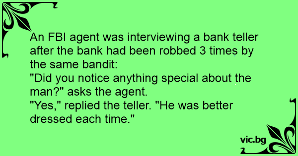 An FBI agent was interviewing a bank teller after the bank had been robbed 3 times by the same bandit: