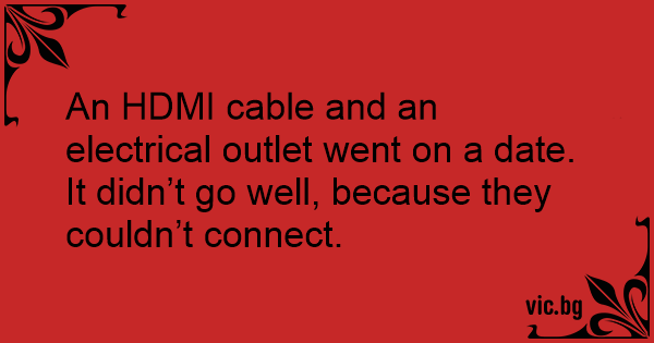 An HDMI cable and an electrical outlet went on a date. It didn’t go well, because they couldn’t connect.