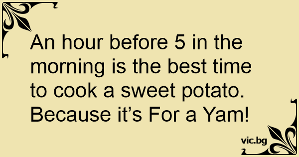 An hour before 5 in the morning is the best time to cook a sweet potato. Because it’s For a Yam!