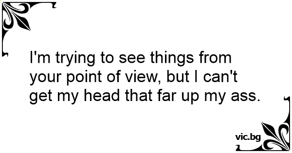 I'm trying to see things from your point of view, but I can't get my head that far up my аss.