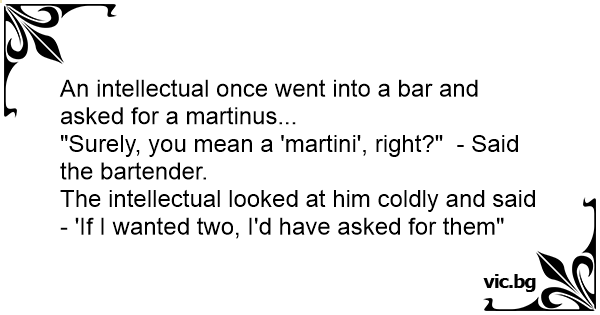 An intellectual once went into a bar and asked for a martinus...