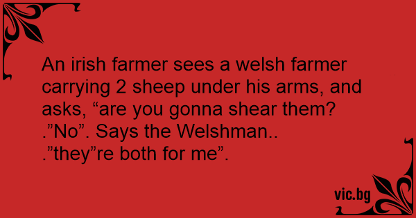 An irish farmer sees a welsh farmer carrying 2 sheep under his arms, and asks, “are you gonna shear them?