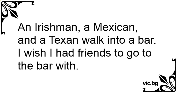 An Irishman, a Mexican, and a Texan walk into a bar.