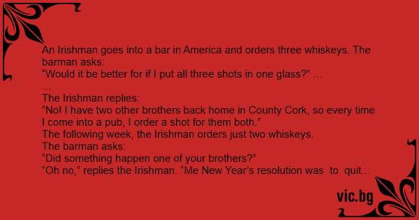 “Oh no,” replies the Irishman. “Me New Year’s resolution was to quit drinking!”