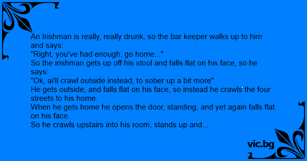 So the irishman gets up off his stool and falls flat on his face, so he says: