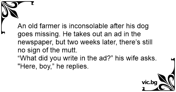 An old farmer is inconsolable after his dog goes missing. He takes out an ad in the newspaper, but two weeks later, there’s still no sign of the mutt.