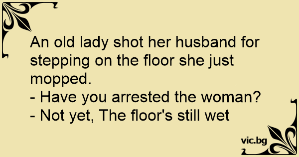 Во полициска станица: - Шефе, жена убила маж со 12 убоди. - Причина? - Одел бос додека го бришела подот. - Ја уапсивте? - Не, чекаме да се исуши подот.
