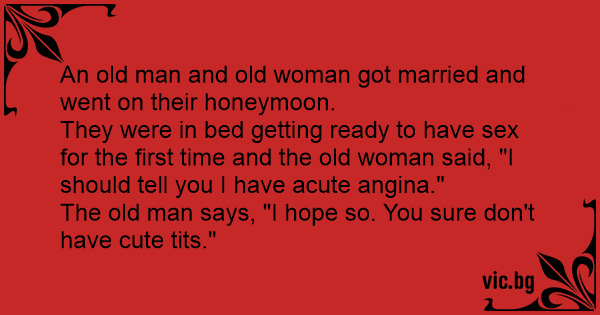 They were in bed getting ready to have sеx for the first time and the old woman said, "I should tell you I have acute angina."