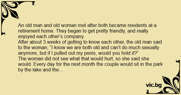 The woman did not see what that would hurt, so she said she would. Every day for the next month the couple would sit in the park by the lake and the old woman would hold the man’s реnis.