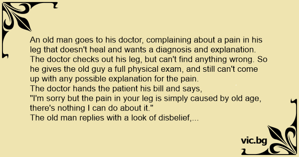 An Old man went to the doctor complaining of a terrible pain in his leg. “I am afraid it’s just old age”, replied the doctor, “there is nothing we can do about it.” “That can’t be” fumed the old...