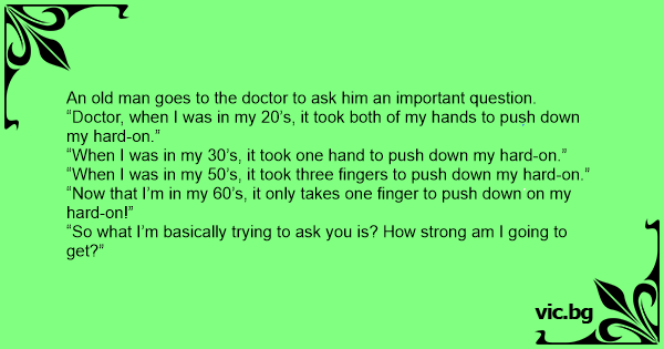 “Doctor, when I was in my 20’s, it took both of my hands to push down my hard-on.”