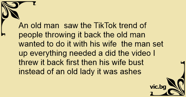 An old man saw the TikTok trend of people throwing it back the old man wanted to do it with his wife the man set up everything needed a did the video I threw it back first then his wife bust instead of an old lady it was ashes