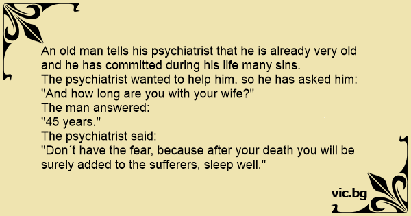 An old man tells his psychiatrist that he is already very old and he has committed during his life many sins.
