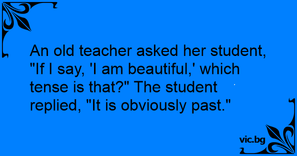 An old teacher asked her student, "If I say, 'I am beautiful,' which tense is that?" The student replied, "It is obviously past."