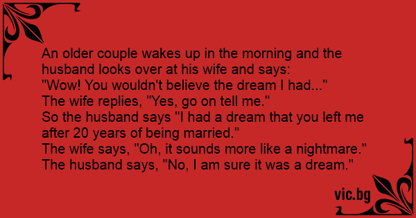 So the husband says "I had a dream that you left me after 20 years of being married."
