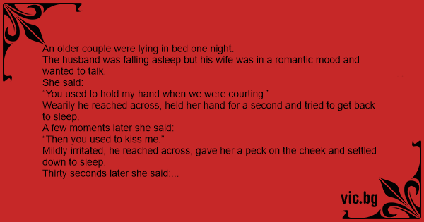 The husband was falling asleep but his wife was in a romantic mood and wanted to talk.