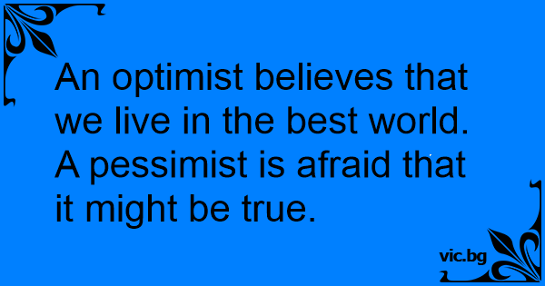 An optimist believes that we live in the best world. A pessimist is afraid that it might be true.