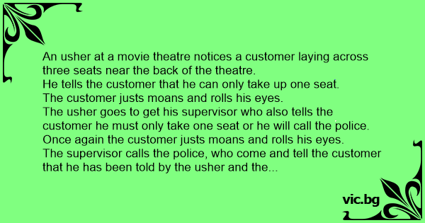 The usher goes to get his supervisor who also tells the customer he must only take one seat or he will call the police.