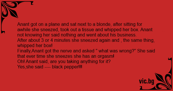 Anant got on a plane and sat next to a blonde, after sitting for awhile she sneezed, took out a tissue and whipped her box. Anant not knowing her said nothing and went about his business.