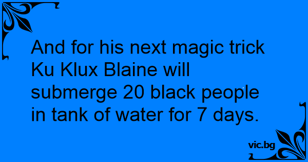 And for his next magic trick Ku Klux Blaine will submerge 20 black people in tank of water for 7 days.