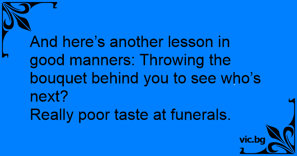 And here’s another lesson in good manners: Throwing the bouquet behind you to see who’s next?