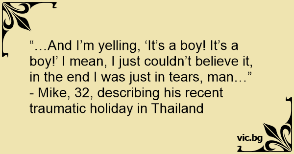- Mike, 32, describing his recent traumatic holiday in Thailand