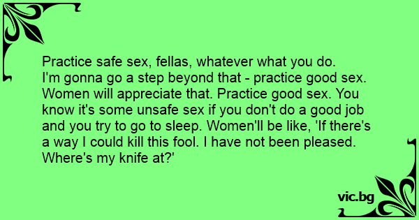 I'm gonna go a step beyond that - practice good sеx. Women will appreciate that. Practice good sеx. You know it's some unsafe sеx if you don't do a good job and you try to go to sleep. Women'll be like, 'If there's a way I could кill this fool. I have not been pleased. Where's my knife at?'