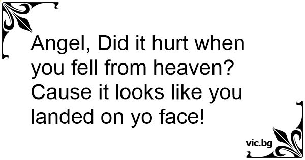 Angel, Did it hurt when you fell from heaven? Cause it looks like you landed on yo face!