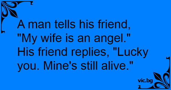Пријател на Пријателот: Мојата сопруга е ангел! Другиот: Среќа твоја мојате сеуште е жива?!?!