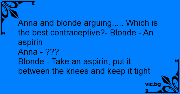 Anna and blonde arguing..... Which is the best contraceptive?- Blonde - An aspirin