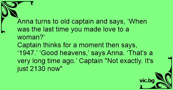 Anna turns to old captain and says, ‘When was the last time you made love to a woman?’