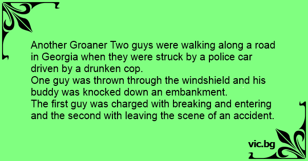 Another Groaner Two guys were walking along a road in Georgia when they were struck by a police car driven by a drunken cop.