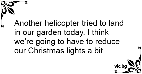 Another helicopter tried to land in our garden today. I think we’re going to have to reduce our Christmas lights a bit.