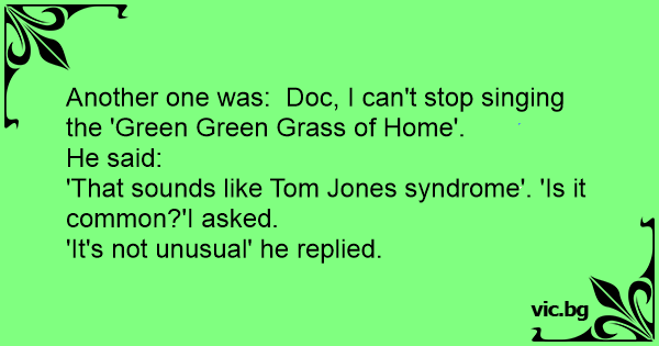 Another one was: Doc, I can't stop singing the 'Green Green Grass of Home'.