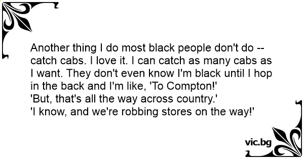 Another thing I do most black people don't do -- catch cabs. I love it. I can catch as many cabs as I want. They don't even know I'm black until I hop in the back and I'm like, 'To Compton!'