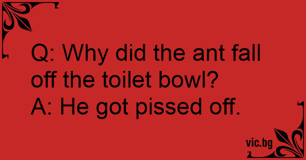 Q: Why did the ant fall off the toilet bowl?