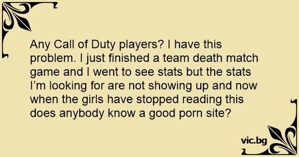 Any Call of Duty players? I have this problem. I just finished a team death match game and I went to see stats but the stats I’m looking for are not showing up and now when the girls have stopped reading this does anybody know a good роrn site?