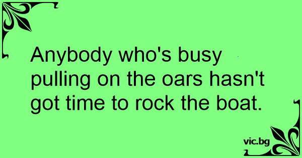 Anybody who's busy pulling on the oars hasn't got time to rock the boat.