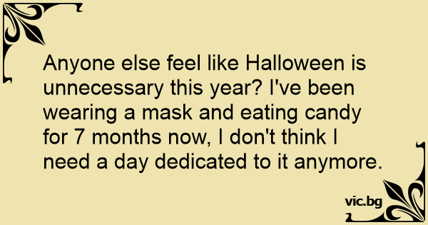 Anyone else feel like Halloween is unnecessary this year? I've been wearing a mask and eating candy for 7 months now, I don't think I need a day dedicated to it anymore.