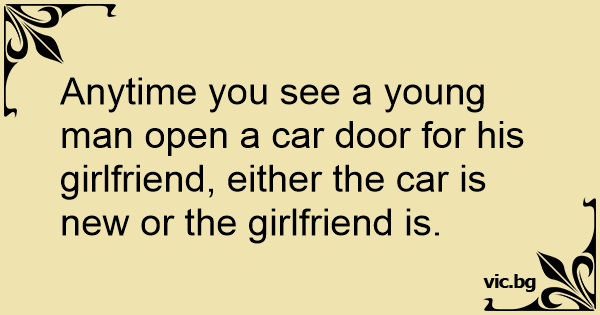 Anytime you see a young man open a car door for his girlfriend, either the car is new or the girlfriend is.