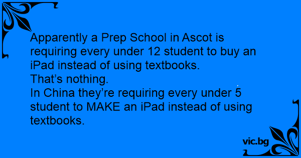 Apparently a Prep School in Ascot is requiring every under 12 student to buy an iPad instead of using textbooks.