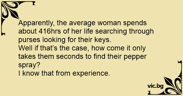Apparently, the average woman spends about 416hrs of her life searching through purses looking for their keys.