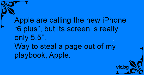 Apple are calling the new iPhone “6 plus”, but its screen is really only 5.5″.<br />Way to steal a page out of my playbook, Apple.