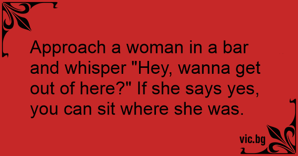 Approach a woman in a bar and whisper "Hey, wanna get out of here?" If she says yes, you can sit where she was.