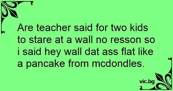 Are teacher said for two kids to stare at a wall no resson so i said hey wall dat аss flat like a pancake from mcdondles.