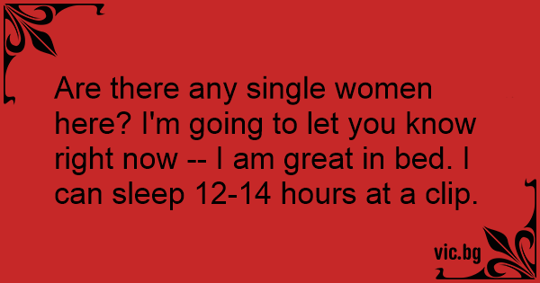 Are there any single women here? I'm going to let you know right now -- I am great in bed. I can sleep 12-14 hours at a clip.